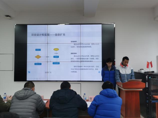 答辩过程分为5分钟展示答辩和5分钟评委问辩两部分组成。评审老师们结合作品的科学性(原理、方法、思路、工具、科技含量)、先进性(原创性、所处位置)、现实意义(应用推广前景)、综合权重(学生个人工作份量)等方面因素,进行指导和建议。