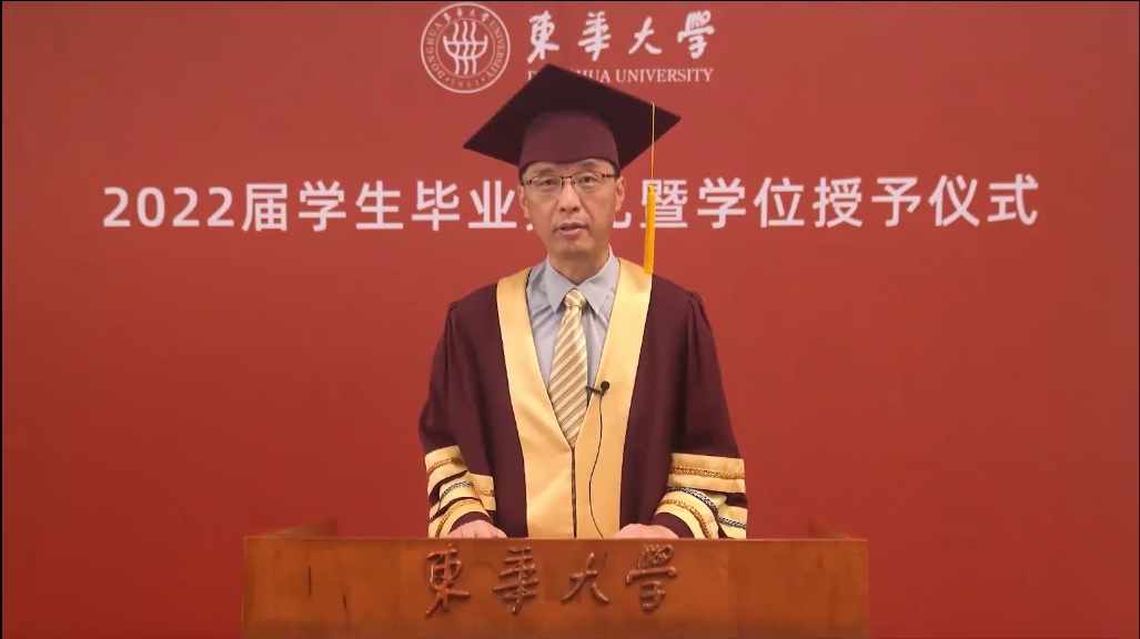 在学位授予环节中,由计算机学院副院长杜明宣读东华大学硕士学位评定委员会学位授予的决定,由计算机学院副院长石秀金宣读东华大学学士学位评定委员会学位授予的决定,并为每位毕业生进行了线上授予学位仪式。