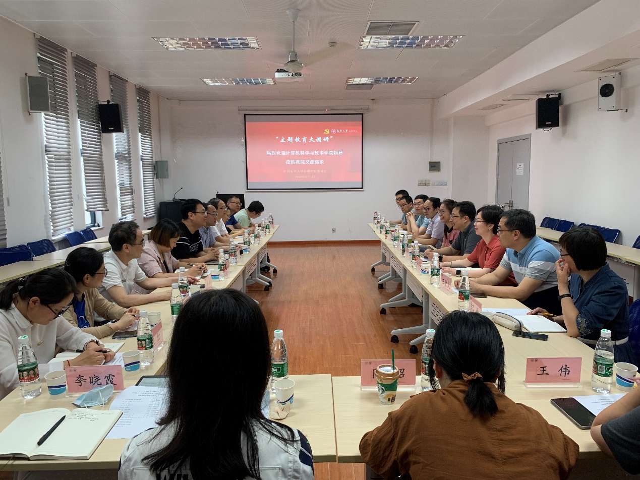 为深入开展学习贯彻习近平新时代中国特色社会主义思想主题教育,6月1日,计算机科学与技术学院党委副书记(主持工作)杜明、院长方志军率队赴纺织学院学习调研。纺织学院党委书记李佳耀,院长覃小红,党委副书记寿晨燕,副院长王富军、许福军,非织系教授王荣武,纺工系副教授万贤福,产品系副教授纪峰,专职党务干部施政等接待了我院一行。李佳耀主持座谈会。