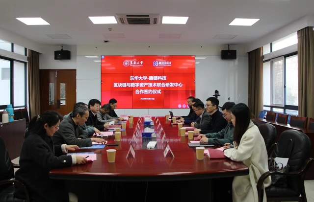 3月12日,星空体育中国官方网站与杭州趣链科技有限公司联合研发中心签约仪式在松江校区举行。杭州趣链科技有限公司高级副总裁匡立中、教育事业部总监郭彦之,东华大学科学技术研究院院长丁彬、计算机学院院长方志军等双方相关职能部门、学院负责人与会。签约仪式由东华大学计算机学院产学研中心主任王鹏伟主持。