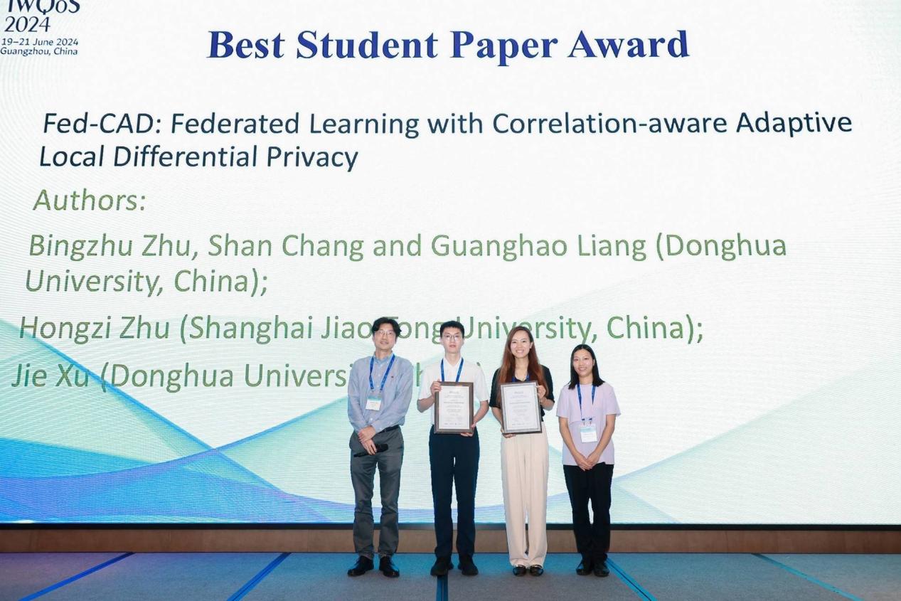 IEEE/ACM IWQoS会议 (International Symposium on Quality of Service) 于6月19日- 6 月21日在香港科技大学(广州)举行,星空体育中国官方网站常姗教授团队针对联邦学习本地化差分隐私技术的最新研究成果“Fed-CAD: Federated Learning with Correlation-aware Local differential privacy”获得本次会议的唯一最佳学生论文奖(Best Student Paper Award)。