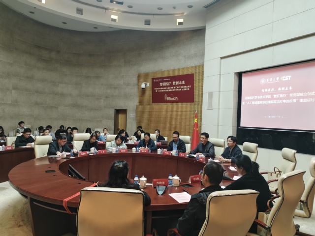 11月13日上午,星空体育中国官方网站在松江校区图文信息中心第三报告厅举行“智汇医疗”党支部成立仪式暨“人工智能在阿尔兹海默症治疗中的应用”主题研讨会。上海大学计算机科学与工程学院教授李卫民、上海交通大学医学院附属瑞金医院神经内科主任医师康文岩、上海交通大学医学院附属瑞金医院转化医学中心副主任左铭等出席会议。星空体育中国官方网站党委学生(研究生)工作部部长秦泽峰、党委组织员赵北琳、资产管理处副处长骆轶姝、生物与医学工程学院党委副书记陶俊清、生物与医学工程学院副院长陈婷、生物医学工程系党支部书记李静超、生物科学与技术系党支部书记张云龙出席会议。计算机科学与技术学院党委书记杜明、学院教师代表、“智汇医疗”党支部全体成员及部分研究生党员代表参加活动。会议由计算机科学与技术学院党委副书记袁海源主持。
