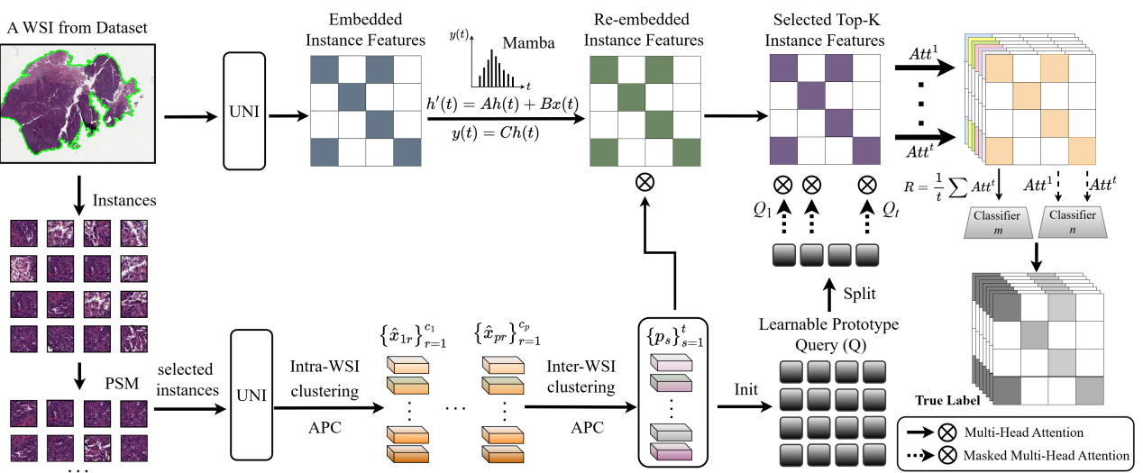 三级淋巴结构 (TLS) 是在特定病理条件下(例如慢性炎症和恶性肿瘤)形成的异位淋巴聚集体。它们在肿瘤微环境 (TME) 中的存在与患者预后和免疫治疗反应密切相关,因此在全切片病理图像 (WSI) 中检测 TLS 对临床决策至关重要。尽管多实例学习 (MIL) 在肿瘤微环境研究中已展现出良好的前景,但其在TLS检测中的潜力却鲜有关注。此外,WSITLS的稀疏性和异质性给特征提取带来了重大挑战,并限制了MIL在不同癌症类型中的推广。