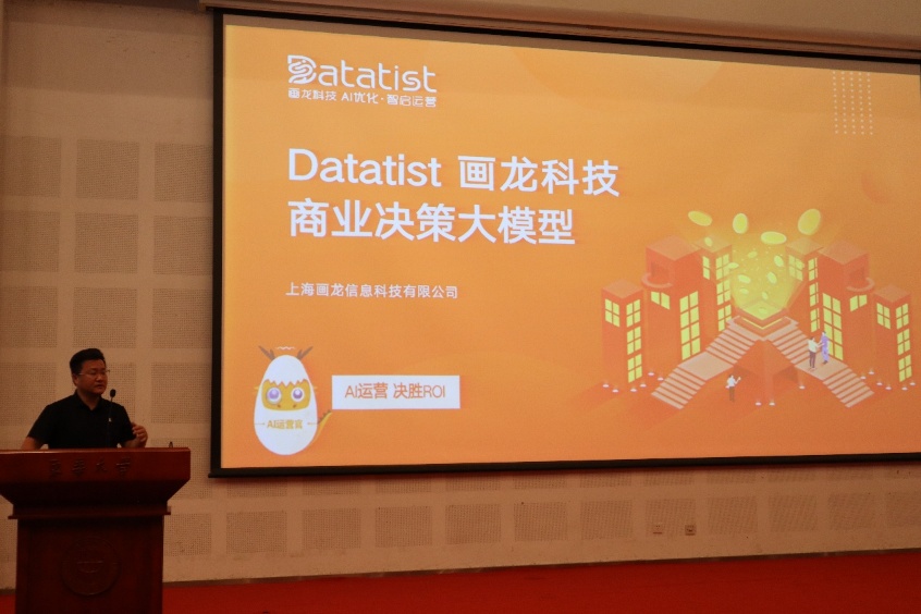 颁奖典礼环节,画龙科技上海研发部负责人沈羽先生通过生动案例与数据,详细介绍了画龙科技在 AI 优化、商业决策大模型领域的技术成果与行业应用,让在场师生对这家深耕智能运营领域的科技企业有了更深入的认知。