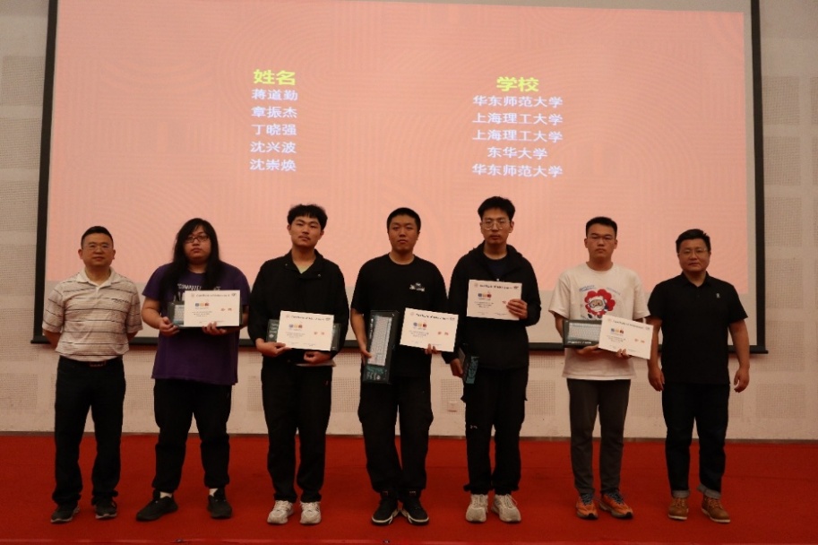 最激动人心的滚榜环节中,获奖名单逐一揭晓。沈羽与ACM集训队教练黄永锋共同为获奖选手颁奖,并获奖选手进行合影留念。
