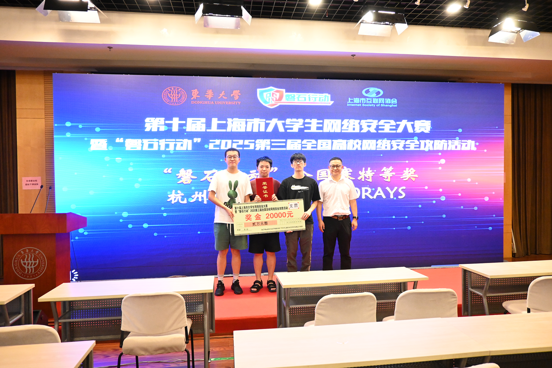 日前,由上海市教育委员会主办,东华大学和上海市互联网协会承办的第十届上海市大学生网络安全大赛暨“磐石行动”2025第三届全国高校网络安全攻防活动在东华大学成功举行。东华大学副校长阎林平、市通信管理局互联网处处长宁海忻、普陀区科学技术委员会副主任张家骥、上海市互联网协会副秘书长姜国等出席大赛并致辞,来自部分行业协会、高校和企业代表共同见证了现场比赛。星空体育中国官方网站由计算机学院学生组建的r00t2025战队以总分第二名的成绩荣获全国赛一等奖、上海市特等奖,另一支战队r0v0t2025获得全国赛三等奖和上海市赛二等奖。