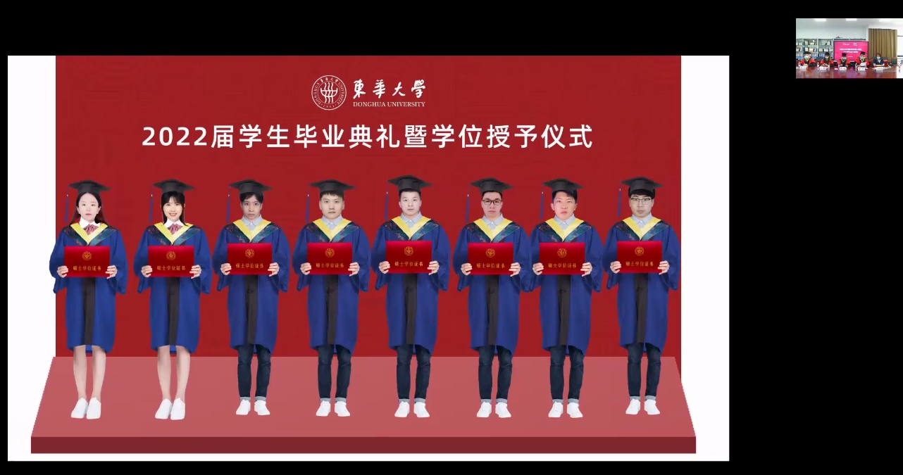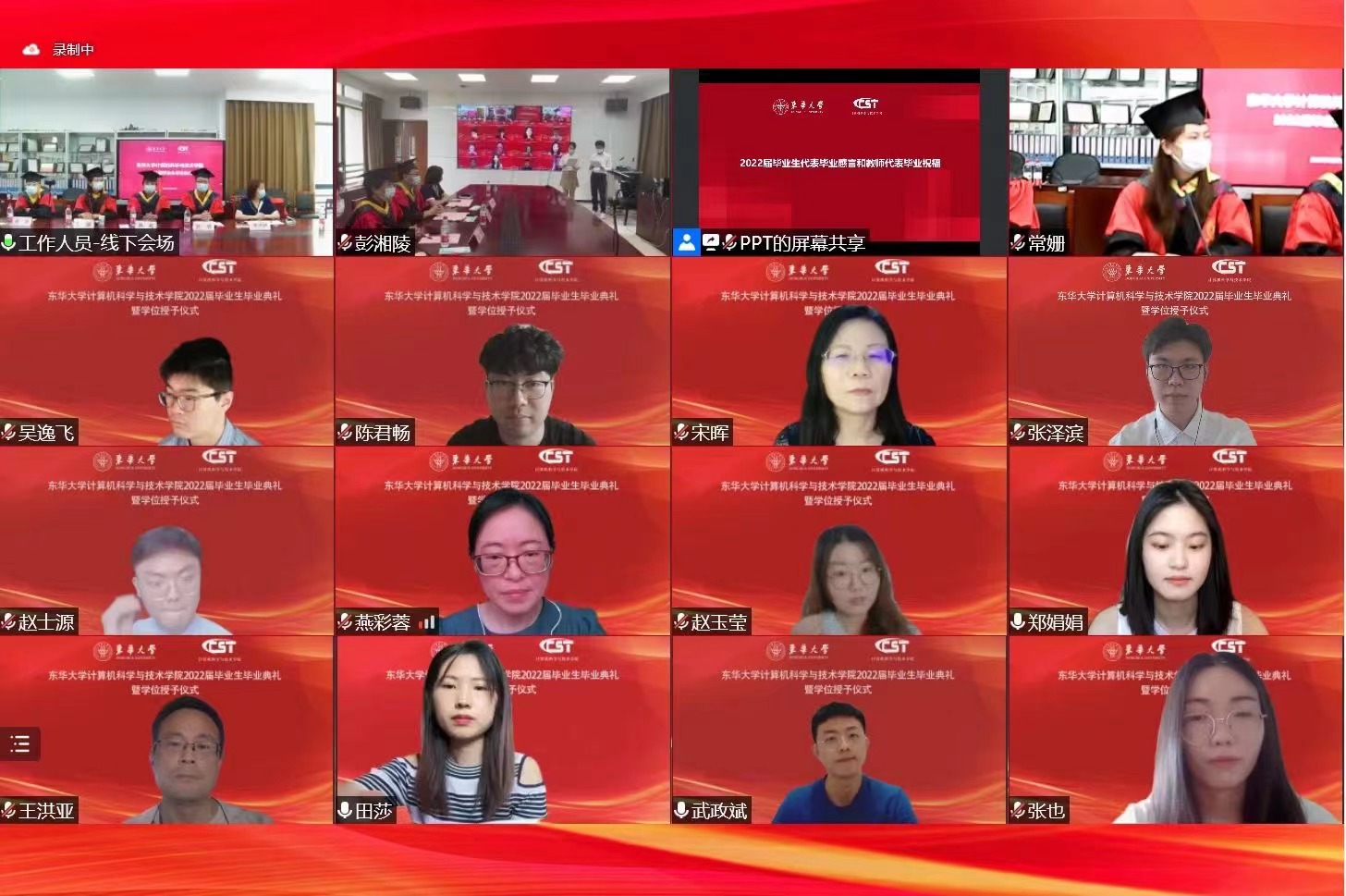 在学位授予环节中,由计算机学院副院长杜明宣读东华大学硕士学位评定委员会学位授予的决定,由计算机学院副院长石秀金宣读东华大学学士学位评定委员会学位授予的决定,并为每位毕业生进行了线上授予学位仪式。
